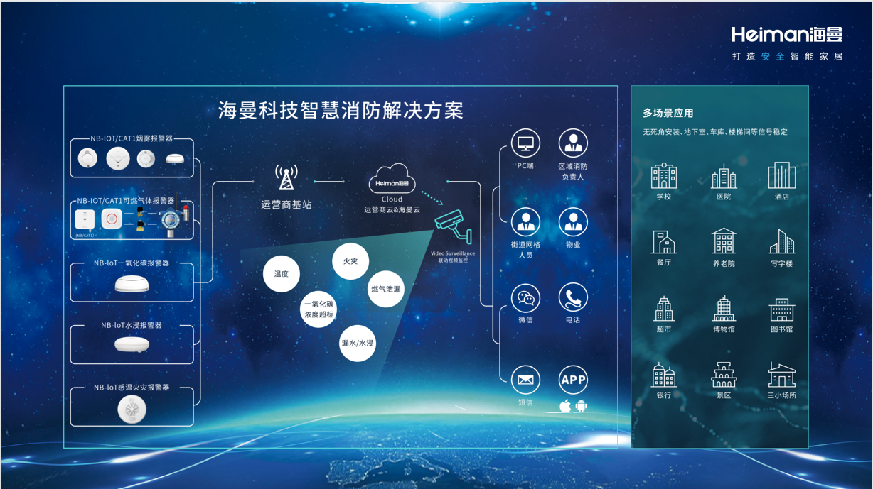 海曼智慧消防平臺(tái)充分利用物聯(lián)網(wǎng)、云計(jì)算、人工智能等技術(shù),相對(duì)于傳統(tǒng)消防系統(tǒng),具備具有免除布線、遠(yuǎn)程監(jiān)控、多方報(bào)警、感控一體、穩(wěn)定安全等優(yōu)勢(shì),能有效降低施工難度,縮短項(xiàng)目周期,縮減維護(hù)成本,解決安裝成本高、安全監(jiān)管難等問題。為防火監(jiān)督管理和滅火救援提供信息支撐,提高社會(huì)化消防監(jiān)督與管理水平,增強(qiáng)消防滅火救援能力。